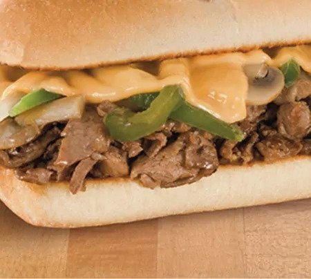Savory shaved rib eye grilled with bell peppers, sweet onions and mushrooms. Smothered in American cheese and served on a toasted hoagie. Served with choice of one side item.